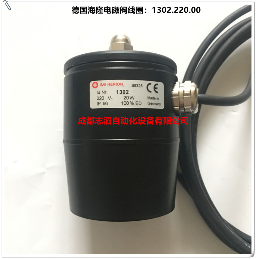 1302.220.00德國海隆imi herion隔爆電磁閥線圈技術參數簡介:品牌德國海隆imi herion、編碼b8325、線圈電壓為220v直流、線圈功率為20w、防護等級為ip66、線圈產地為德國!需要配合海隆電磁閥使用!