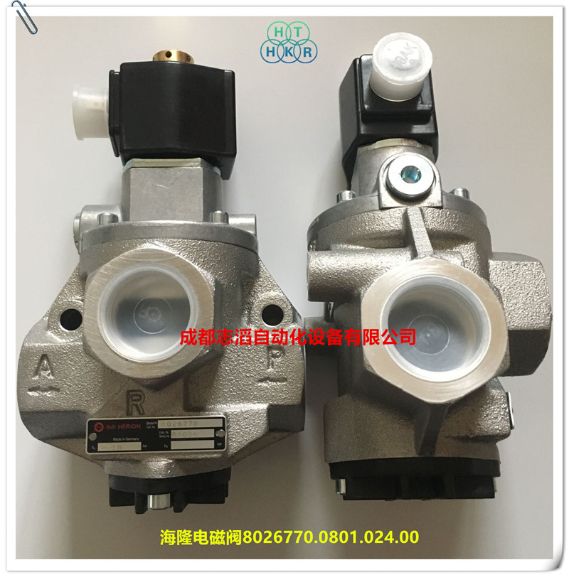 德國海隆imi herion電磁閥8026770.0800.024.00技術參數:接管口徑g1、通徑位25mm、流量9000l/min、工作壓力0-10bar、閥體重量1.5kg、配海隆普通線圈0800、電壓24vdc、產地為德國、應用在汽車制造行業!
