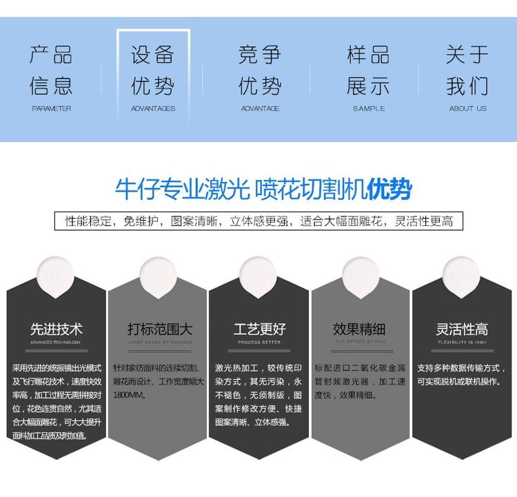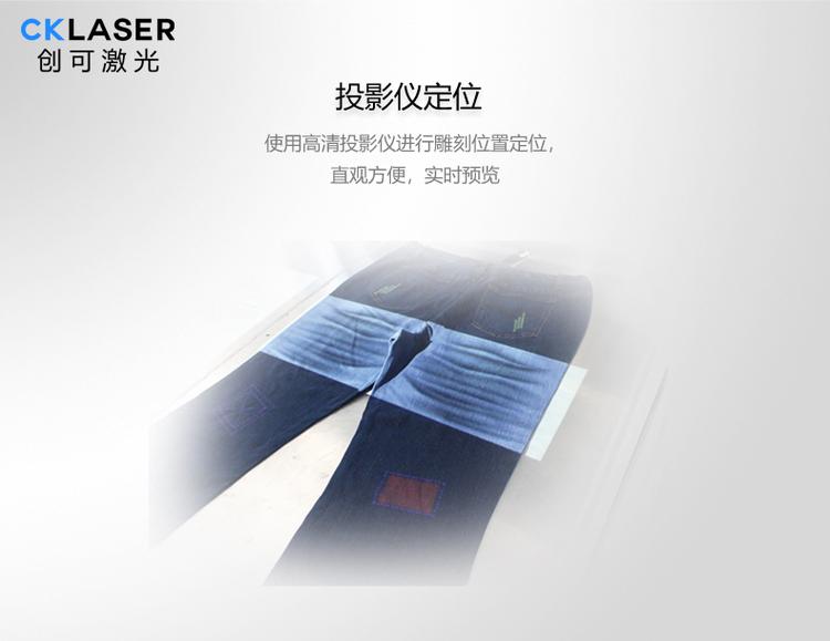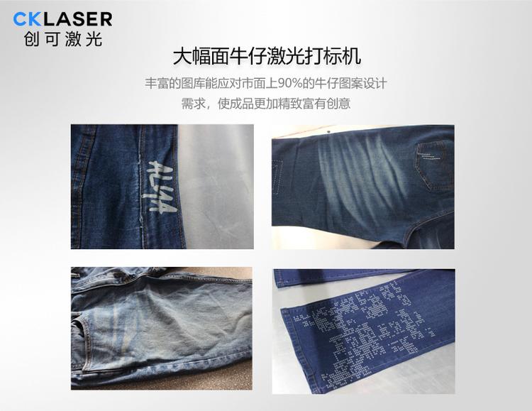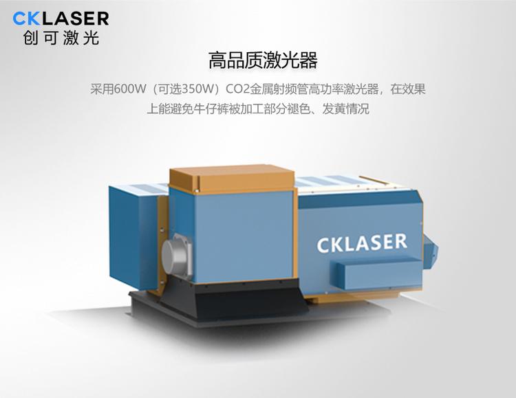 采用600w(可選350w) co2金屬射頻管高功率激光器,在效果上能避免牛仔褲被加工部分褪色發(fā)黃情況
