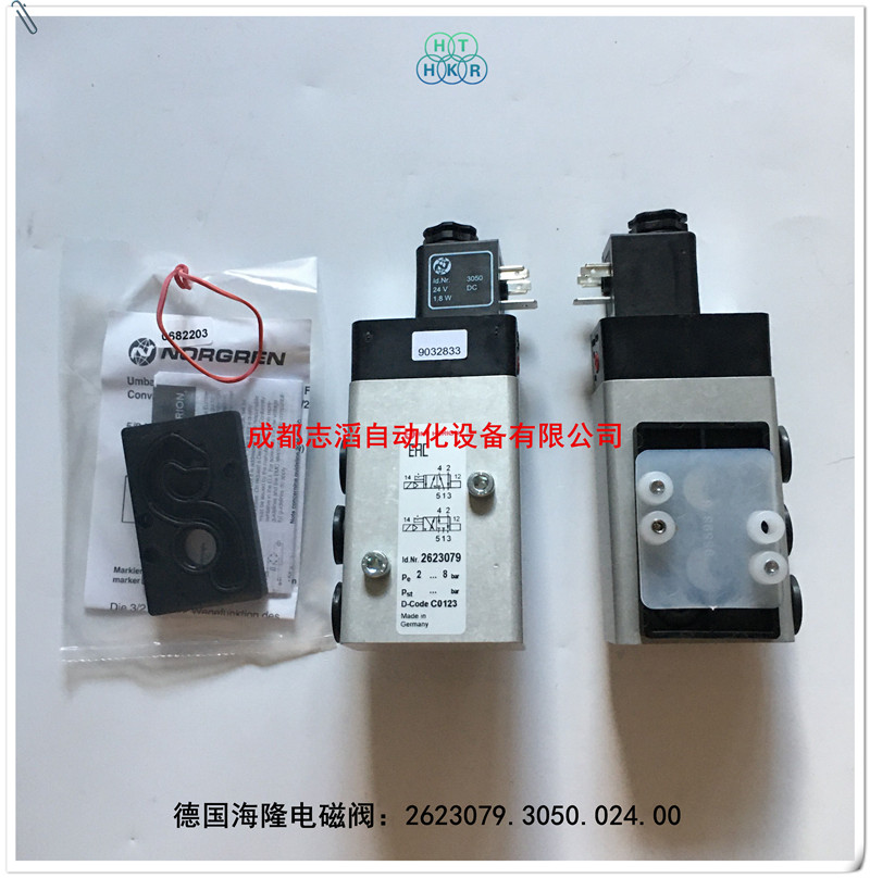 2623079.3050.024.00德國海隆imi herion電磁閥技術參數:接口尺寸1.3.5為g1/4、2.4為法蘭、功能2位5通/2位3通、工作方式單電控、流體通徑6mm、工作壓力2-8bar、kv值1.2立方米/h、閥體重量0.4kg、配3050(功率為1.8w、防護等級ip65-帶電氣插頭、環境及流體溫度-40到50攝氏度、電氣連接din43650b型、線圈重量0.054kg)的線圈電壓為24vdc!應用行業為電廠、閥門廠
