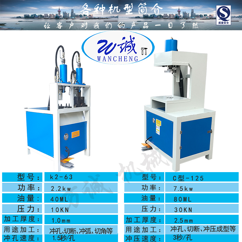 佛 山市萬誠機(jī)械設(shè)備有限公司是不銹鋼沖孔機(jī)、液壓沖孔機(jī)、方管機(jī)、圓管機(jī)、一次成型機(jī)、全自動沖孔機(jī)等產(chǎn)品專業(yè)生產(chǎn)加工的公司,擁有完整、科學(xué)的質(zhì)量管理體系。佛 山市萬誠機(jī)械設(shè)備有限公司的誠信、實(shí)力和產(chǎn)品質(zhì)量獲得業(yè)界的認(rèn)可。歡迎各界朋友蒞臨參觀、指導(dǎo)和業(yè)務(wù)洽談。五金/管材沖孔模具是以標(biāo)準(zhǔn)級/軍工級模具鋼材料經(jīng)特殊精細(xì)切割加工制備而成的一對一型模具。模具鋼經(jīng)真空熱處理后內(nèi)部結(jié)構(gòu)得到十分細(xì)致均勻排列,使用硬度、韌性達(dá)到高標(biāo)準(zhǔn),在重復(fù)、高頻率金屬件沖壓過程中,仍保持模具性質(zhì)穩(wěn)定,出產(chǎn)的金屬件標(biāo)準(zhǔn),切面整齊有序的效果! 五金/管材沖孔模具在制造過程中加以嫻熟的應(yīng)用經(jīng)驗(yàn)進(jìn)行改造!