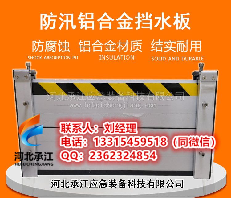 防汛擋水板由優質鋁合金模壓型材制成,板材表面經過陽極氧化處理,抗酸 、堿 的侵蝕及不受空氣的污染、酸 雨、臭氧的侵襲,耐紫外線,長期保持固有顏色和光澤。