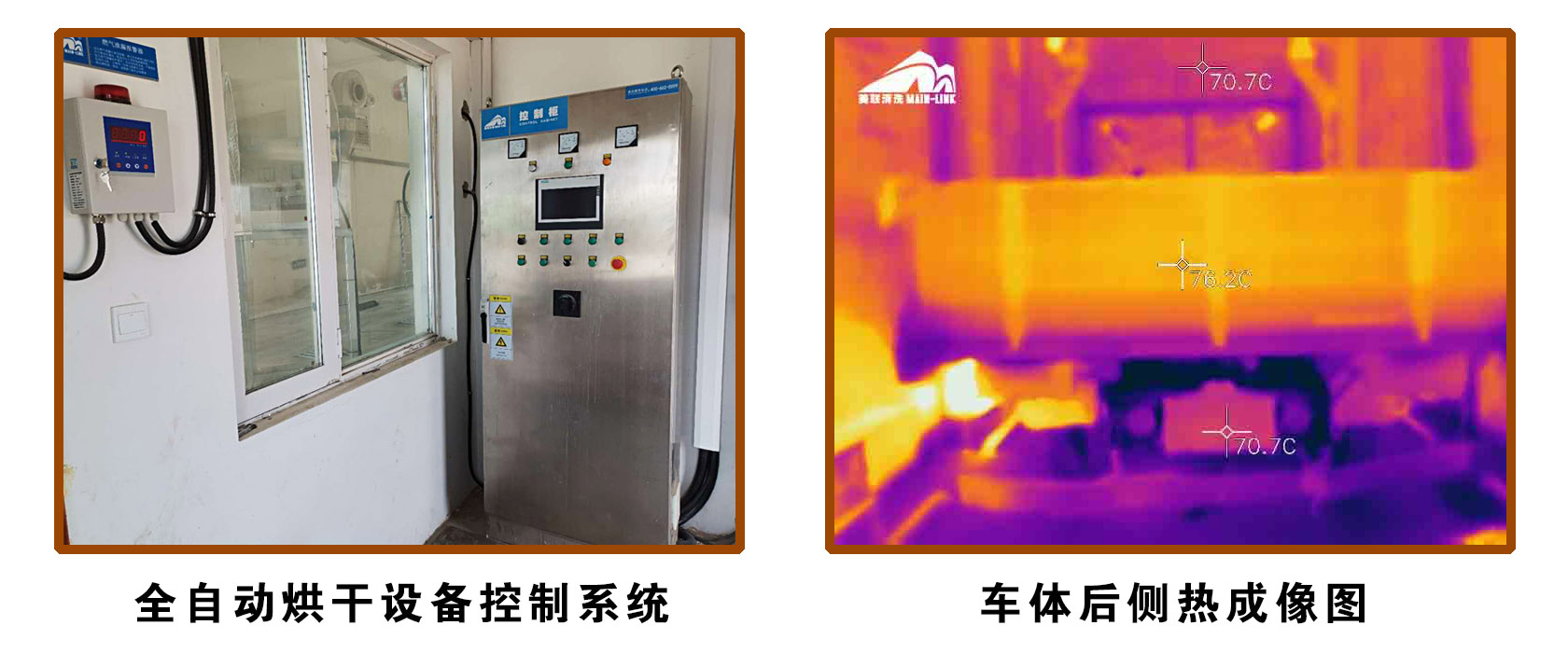 全自動烘干設備控制系統(左)和車輛后側熱成像圖(右)
