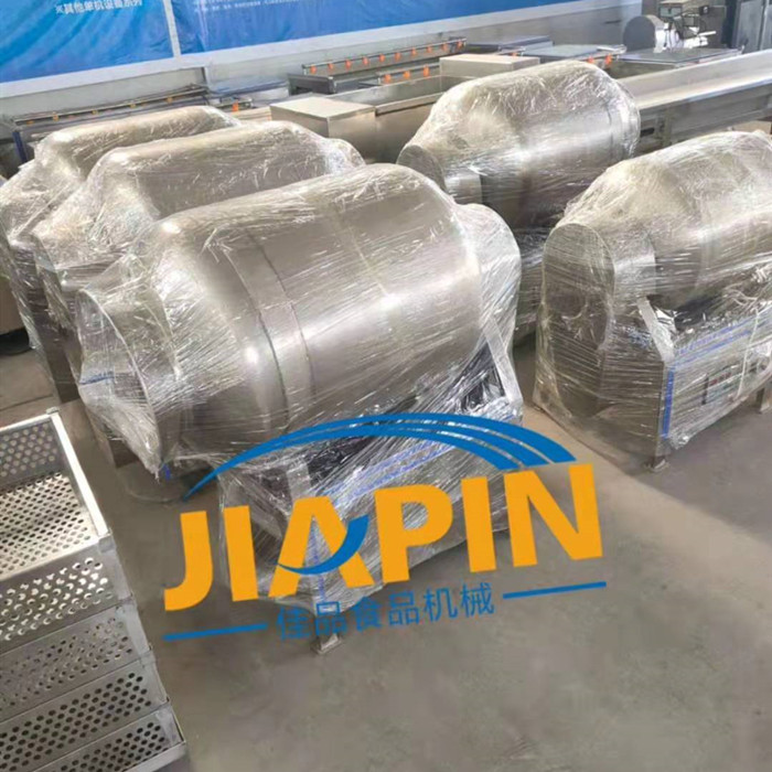 腌制就得對于塊狀肉魚咸菜等進行快速腌制,怎么個快速法呢?諸城佳品食品機械高速您這個大桶裝有真空機,把滾筒里面的空氣吸到負壓0.06-0.08左右,桶內的水分 鹽 味料就會擠壓滲透到肉的內部,并通過滾筒的作用將肉的周圍腌制均勻,肉類腌制后增重大,切片效果好看,提gaoxiao率,肉類食品的廠家 商家都已是很普遍用這款機器