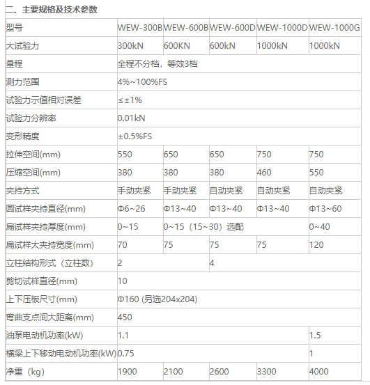 wew系列微機屏顯萬能試驗機(300b, 600b, 600d, 1000d,1000g)本機主要用于金屬,非金屬材料之拉伸、壓縮、彎曲和剪切等力學性能試驗。本機配有計算機、打印機、電子引伸計、光電編碼器及通用試驗軟件,可以準確測定金屬材料的抗拉強度、屈服強度、規定非比例延伸強度、延伸率、彈性模量等力學性能。試驗結果可以查詢和答應(力-位移,力-變形,應力-變形,應力-位移,力-時間,變形-時間)六種曲線及相關試驗數據,具有軟件自檢功能,能自診斷故障,詳見軟件說明。是工礦企業、科研單位、大專院校、工程質量監督站等部門的理想測驗設備。