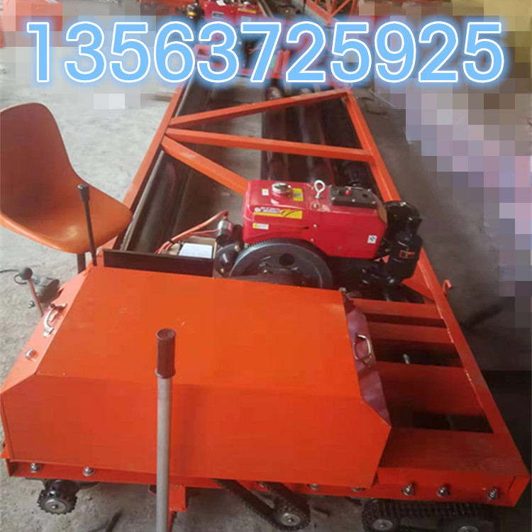1.將機器運至施工現場,兩行走輥平放于模板上(也可先接通電源,啟動行走電機。使機器沿事先搭好的斜坡行駛至模板上)
