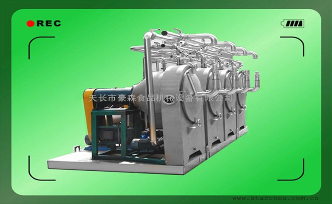 由于錐形篩籃的前面和背面都設置了噴水的噴嘴,能夠均勻地向篩籃噴灑稀釋水,以將薯液中的淀粉 顆粒沖洗出來,同時噴水也能提高淀粉 顆粒和細纖維(薯渣)的運動速度,促使粉 、渣分離,cf提取淀粉 。