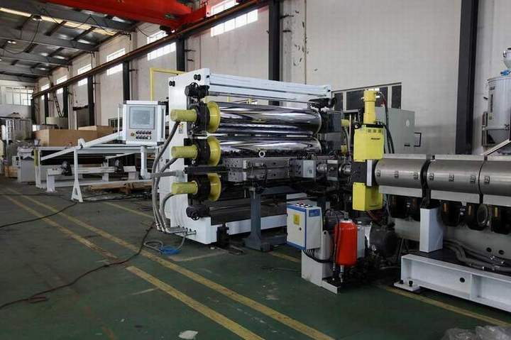 正規(guī)廠家供應(yīng)螺桿,壽命長(zhǎng),質(zhì)量有保障。擠出模具材質(zhì)采用模具鋼,流道均勻,成型好。三輥壓光機(jī),輥面光滑,輥面可聯(lián)動(dòng)可滾動(dòng),可調(diào)節(jié),運(yùn)行穩(wěn)定。模溫機(jī)單油路控制,自動(dòng)控溫,控溫穩(wěn)定。