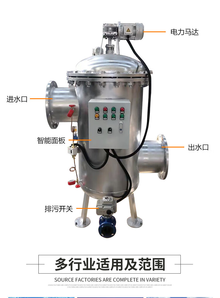 ③控制系統反應靈敏,運行精確,具有壓差和時間雙重設定功能,可以根據不同水源和過濾精度靈活調整反洗壓差或時間設定值;