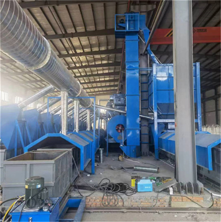 鑄造樹脂砂再生設(shè)備是由很多種設(shè)備組成,舊砂經(jīng)5*5米落砂機(jī)初破后進(jìn)入磁選輸送皮帶以去除鐵一類雜物,后舊砂進(jìn)入一級(jí)再生多功能振動(dòng)破碎機(jī)(砂塊破碎篩分、除塵及搓擦脫膜);在經(jīng)斗式提升機(jī)輸送至二級(jí)再生(再生砂的樹脂脫膜及除塵)一雙盤渦流離心再生機(jī)和二級(jí)流幕式風(fēng)選器,進(jìn)行脫模除塵;之后進(jìn)入直線振動(dòng)篩篩出粉 塵;在經(jīng)斗式提升機(jī)輸送至儲(chǔ)備砂庫(砂庫容量20噸);之后在經(jīng)斗式提升機(jī)輸送至混砂砂庫(砂庫容量20噸);最后通過手動(dòng)+氣動(dòng)一體砂量調(diào)節(jié)閥進(jìn)入固定式雙臂連續(xù)混砂機(jī)(混砂能力5-10噸/時(shí)可調(diào))混砂。設(shè)備配備全自動(dòng)智能化電氣控制系統(tǒng)(觸摸屏控制反饋,歐姆龍plc)。除塵器采用mc-300脈沖布袋式除塵器有效去除粉 塵,實(shí)現(xiàn)達(dá)標(biāo)排放。能有效地保證高要求的型砂質(zhì)量;保證車間文明及清潔生產(chǎn)的工作環(huán)境。