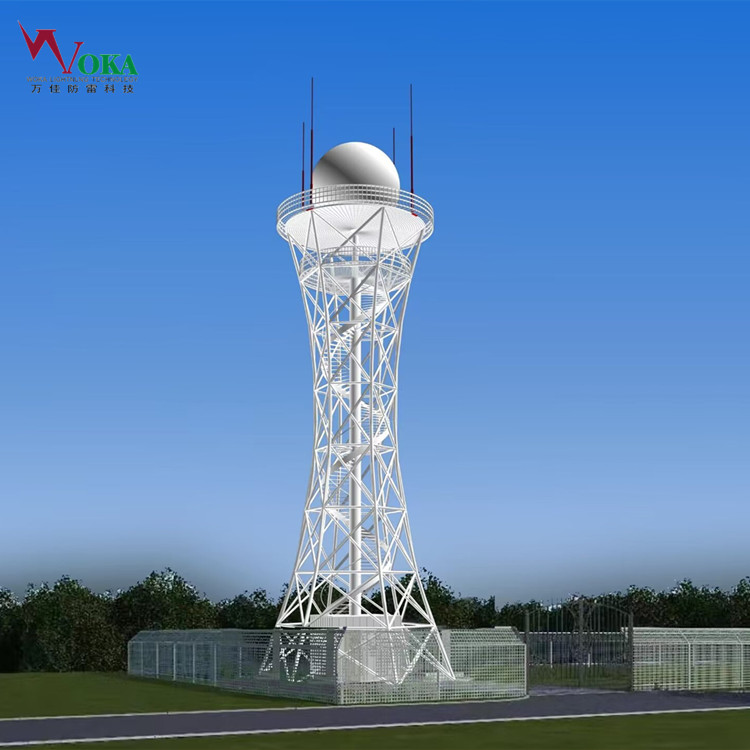 雷達塔雷電防護很重要的問題,因為它需要確保雷達設備在惡劣的雷電環境下也能正常運行。雷達塔防雷措施綜合運用設置避雷帶及安 裝避雷針接閃,利用結構柱內的鋼筋分流,用建筑物基礎作為共同接地體,加強重要機房及部位的電磁屏蔽,完善防雷區界面及各防雷區內部的均壓等電位連接,安 裝電源、信號spd籍位等措施,堵塞雷電進入雷達系統的各個通道,提高整個雷達系統的耐雷電沖擊水平。其中,雷達塔的防雷引下線是防雷設施中的一個重要組成部分,也稱為接地線或引雷線。它的主要作用是將建筑物(如雷達塔)和設備中的雷電流安 全地引入地下,從而減小雷擊的危害。防雷引下線通常由銅、鋁、鋼等導電材料制成,具有較強的導電性和承載能力。它是連接接閃器(避雷針的頂部部分)與接地裝置的金屬導體,用于將雷電流從接閃器傳導到接地裝置。在安 裝防雷引下線時,需要注意以下幾點:選擇合適的引下線長度和直徑,通常根據建筑物和設備的高度、物理特性等因素 來確定。安 裝引下線時要注意鋪設方向,避免與周圍結構物相交叉。引下線的安 裝方式可以是直接埋入地下,也可以使用焊接或連接器等方式固定在建筑物或設備上。此外,為了確保防雷引下線的有效性和安 全性,還需要定期進行檢查和維護。如果發現引下線存在損壞或老化等問題,應及時進行更換或修復。