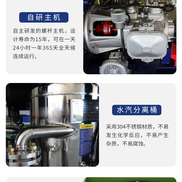 無油水潤滑空壓機是一款集效率高、節能與環保于一體的新銳空氣壓縮設備。無油水潤滑采用水潤滑技術,摒棄了傳統的潤滑油作為介質,實現真正無油壓縮,適合醫 藥、精密電子、食品、發酵等對于壓縮空氣質量要求較高的行業。