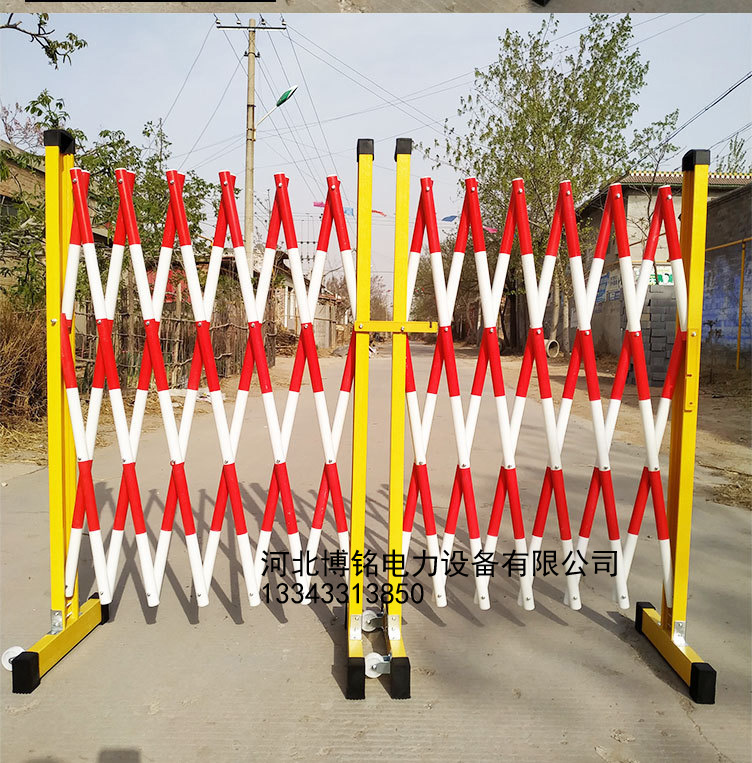 河北博銘電力設備有限公司生產的玻璃鋼絕緣伸縮圍欄高度為1.2米,伸開長度為2.5米,帶拐彎,解決了四角處的不便。
