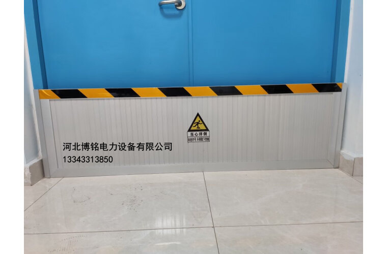 河北博銘電力設備有限公司生產的新型鋁合金材質擋鼠板替代老式擋鼠板材,實用、結實、耐用、使用時間長。由擋鼠板主板面和卡槽構成,外觀可見部分為鋁合金定制,且貼有黃黑色的反光警示貼。