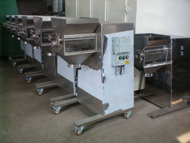 粒度均勻,控制簡單,該機是將潮濕粉 末混合物,在旋轉滾筒的正,反旋轉作用下強制性通過篩網而制成顆粒。