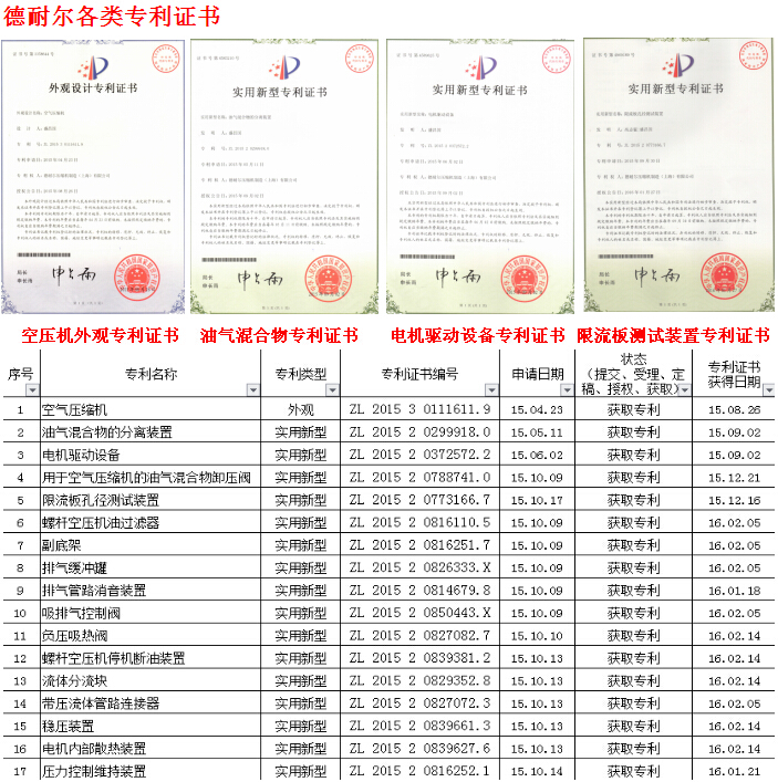 德耐爾壓縮機建立了完備的研發(fā)中心和檢測中心,并先后通過了iso9001國際質(zhì)量管理體系認(rèn)證、歐盟ce認(rèn)證、國家節(jié)能認(rèn)證、國家能源效率檢測實驗室認(rèn)證等。