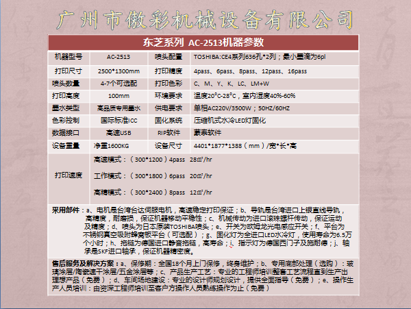 廣州傲彩機械設備有限公司亞克力uv平板打印機售后承諾: