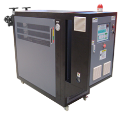 工作原理:就是以導(dǎo)熱油(水)做為傳熱媒介的模溫機(jī)。模溫機(jī)自身設(shè)有一個(gè)儲(chǔ)油(水)箱,工作時(shí)導(dǎo)熱油(水)由儲(chǔ)油(水)箱進(jìn)入系統(tǒng),經(jīng)循環(huán)泵打入到模具或其它需要控溫的設(shè)備,導(dǎo)熱油(水)從被控溫設(shè)備出來(lái)后,再返回到系統(tǒng),周而復(fù)始。導(dǎo)熱油(水)同過(guò)加熱器升溫,當(dāng)感溫探頭探測(cè)到的媒體溫度達(dá)到設(shè)定值時(shí),加熱器停止工作。當(dāng)溫度低于設(shè)定值時(shí),加熱器開(kāi)始工作,當(dāng)溫度達(dá)到設(shè)定值后,又停止工作。如此循環(huán)往復(fù)。