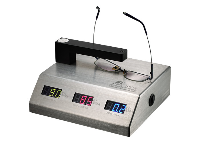 2:將被測(cè)試物放入測(cè)試位置。三個(gè)顯示器分別顯示被測(cè)物對(duì)紫外線,紅外線和可見光的透過(guò)率。