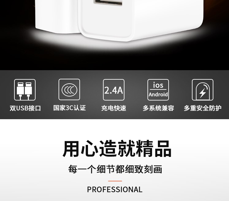 2.跨境爆款qc3.0 3usb快充,白色和黑色兩個規(guī)格,工藝和用料已達到fcc認(rèn)證標(biāo)準(zhǔn),真機實測觸發(fā)蘋果快充、華為fcp快充、qc3.0/2.0快充。