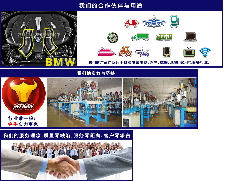 深圳市匯云科技有限公司是專(zhuān)業(yè)從事編織網(wǎng)管、銅編織管、圓形彩管、pp紗編織線、扁型網(wǎng)管(帶磨術(shù)貼)、擴(kuò)充網(wǎng)管、環(huán)保套管、pet網(wǎng)管等編織產(chǎn)品生產(chǎn)的內(nèi)資企業(yè)。公司擁有多條先進(jìn)的現(xiàn)代化生產(chǎn)檢測(cè)設(shè)備,使公司的產(chǎn)品在質(zhì)量上、數(shù)量上、服務(wù)上都得到了充分的保證,贏得了眾多賓客的認(rèn)可和信賴(lài)。 公司產(chǎn)品廣泛用于電腦電源、飛機(jī)汽車(chē)、光纖電纜、音響視頻等家用電器的線路上,保護(hù)路線不受磨損,延長(zhǎng)線路使用壽命起到了很好的保護(hù)作用。同時(shí)還可用在燈飾、圣誕禮品等產(chǎn)品的裝飾上,起到了很好的美觀效果。產(chǎn)品已通過(guò)ul認(rèn)證(認(rèn)證號(hào)為:e252099)和sgs認(rèn)證。