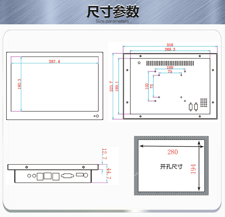 - 規格:13.3寸電阻觸摸屏一體機電腦