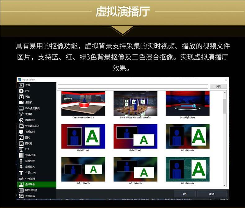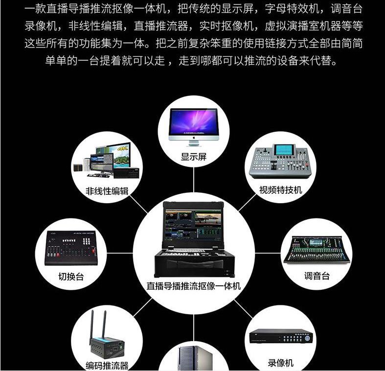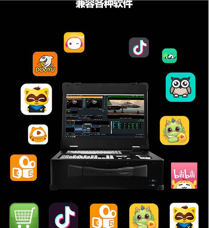tv-gm700便攜虛擬錄播一體機是一款集音視頻、聲音處理、虛擬摳像、字幕圖形迭加、導播切換、直播錄播等多種功能于一體的便攜式現場制作工作站。主屏幕使用17.3英寸超薄液晶顯示屏,搭配高粘性磨砂鋼化玻璃膜,保護一體機屏幕在承受外力時有效抵消表層應力,大幅提高了液晶顯示屏的受力承載能力,我們為防止用戶在合上屏幕時用力過猛導致屏幕和安 全鎖損壞,特意在屏幕鎖鉤兩側設計了硅膠材質的減震墊,有效起到了保護屏幕和安 全鎖的作用,降低了人為風險導致設備損壞的幾率。系統支持任意輸入信號自定義裁剪,旋轉,鏡像,隔行處理,支持超級gpu色鍵,摳像邊緣無鋸齒,無溢色,效果自然,動作無拖尾,支持可視化自由搭建虛擬演播場景,無限圖層自定義,采用無軌虛擬演播技術