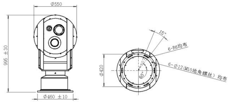 光電轉臺結構一體化球形設計角度水平0~360°連續旋轉;俯仰+45°~-45°速度水平0.01°~45°/s;俯仰0.01°~15°/s預置位80個預置位協議pelco-d、pelco-p等多協議電源ac220vdc48v接口1路rj45;1路電源環境指標防護等級ip66工作溫度-40℃~+65℃儲存溫度-40℃~+70℃
