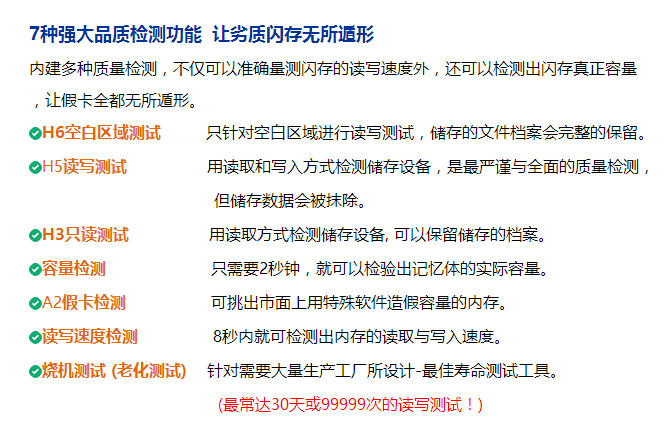 h5讀寫檢測 用讀取和寫入的方式檢測儲存設備,是最嚴謹與全面的質量檢測,儲存數據會被抹除。