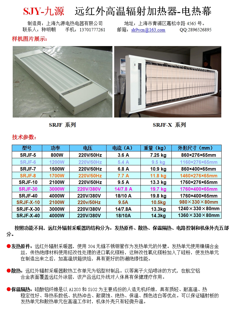 以上是上海九源電熱電器有限公司廠家直供哈爾濱市電輻射采暖器srjf-6的詳細信息,如果您上海九源電熱電器有限公司廠家直供哈爾濱市電輻射采暖器srjf-6的價格、廠家、型號、圖片有什么疑問, 請 聯系供應商 或 請供應商聯系我
