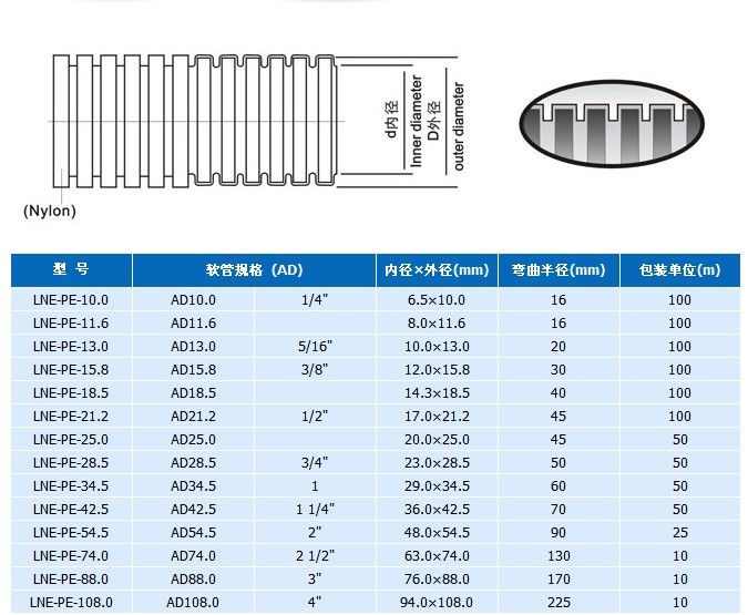 使用方法: 將電線電纜插入管內,在配上lne:sm-g 、sm、sm-f系列軟管接頭對應的型號使用即可