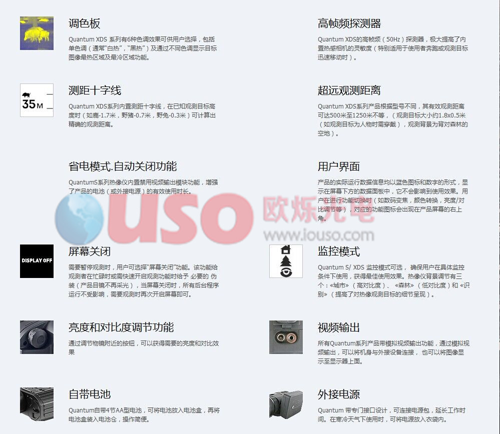 白俄羅斯脈沖星xd50s 手持紅外熱成像儀熱成像77317 探測器分辨率 384x288幀頻, hz 50光譜范圍靈敏度,微米 7,7 … 13,2顯示器類型 oled顯示器分辨率, 像素 640x480光學性能放大倍率, x 2.8數碼變焦, x 2x; 4x物鏡 f50/1.2視場角度, °,水平/垂直 11x8,3光學性能屈光度調校, 屈光度 ± 5可視距離探測距離,米 (全身靶目標大小,1,7*0,5 米·) 1250電源電源電壓, v 4 ÷ 6電池類型 4xaa外接電源 dc 8,4 ÷ 15外觀和使用防護等級(按照 iec 60529標準) ipx4可使用溫度范圍 °с -25 ... +50尺寸, 毫米 200x86x59重量 (不帶電池), 公斤 0,43
