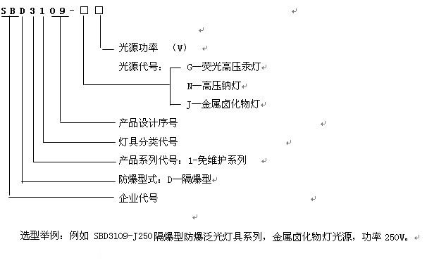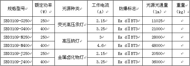 1. 防爆型式隔爆型,適用于爆炸危險場所照明使用。