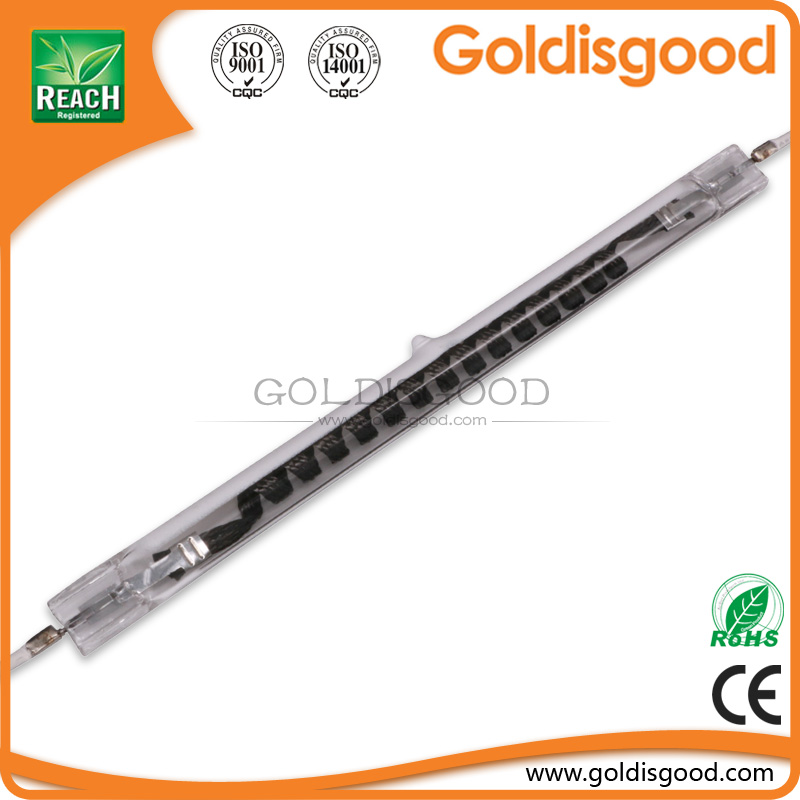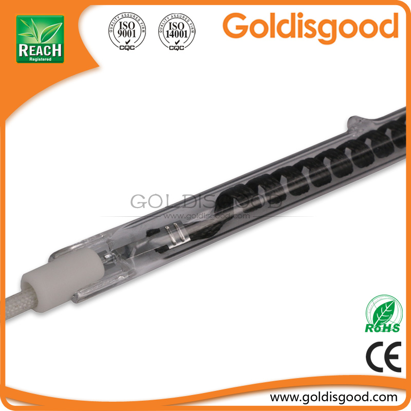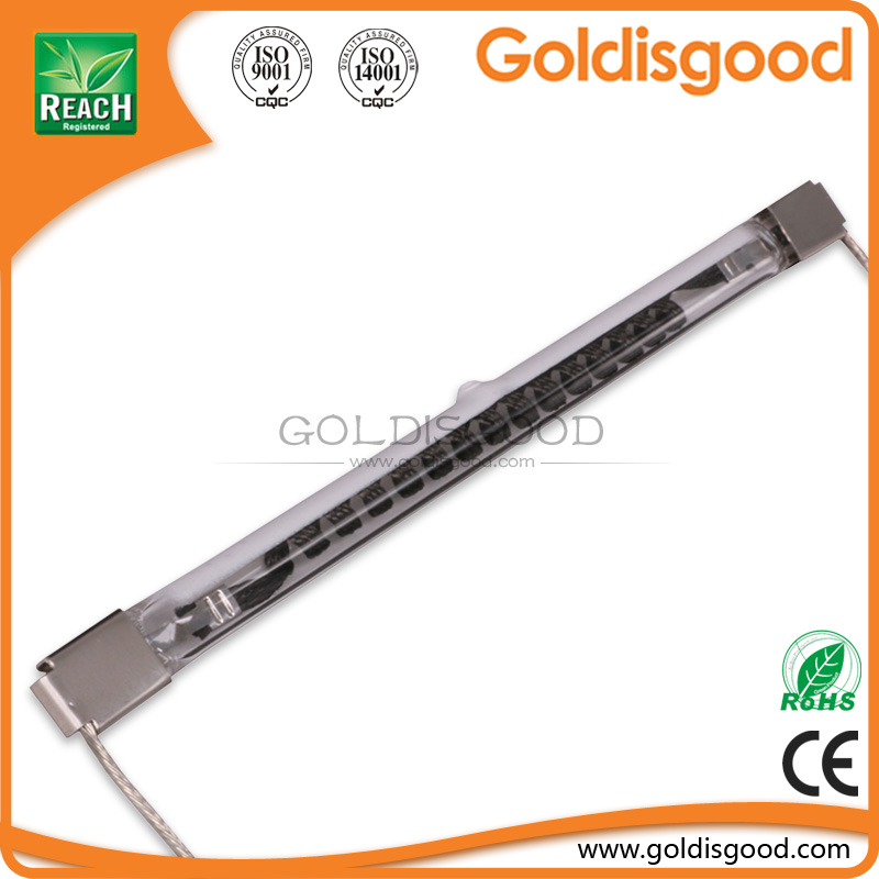 二、鹵素 管是密封的加熱管是石英管的一種,它以石英玻璃管為外殼,里面的發熱絲是鎢絲,充有惰性保護氣體。稍微貴、最暗