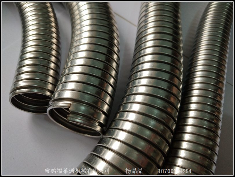 雙扣金屬軟管采用雙鉤互鎖結(jié)構(gòu)支撐,抗拉抗扭能力超強(qiáng),鋼帶厚度更厚,可以承受2500n的拉力,抗拉能力強(qiáng),抗壓1000n,耐疲勞次數(shù)>5000,自然延伸率<5%,更好的保護(hù)了內(nèi)部線路和塑性管路,從內(nèi)徑4mm-64mm均可生產(chǎn),滿足儀器儀表,精密儀表線路保護(hù)對(duì)于小規(guī)格抗拉抗扭蛇皮管的需求,抗扭,福萊通雙扣不銹鋼蛇皮管具有很好的抗扭耐疲勞性能,可以很好的避免因管子扭動(dòng)對(duì)內(nèi)部線路產(chǎn)生損傷的情況,包塑軟管防水、防油、防腐蝕,密封性好。產(chǎn)品美觀,結(jié)構(gòu)緊密。