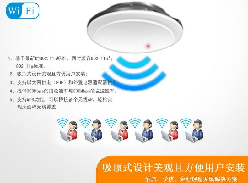 是一款最好的室內吸頂ap,主要應用到酒店、機場、咖啡館、購物中心、體育場、辦公室、員工宿舍、大學等場所。