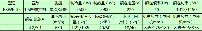 1.5p防爆空調掛式機bswf-35特點: