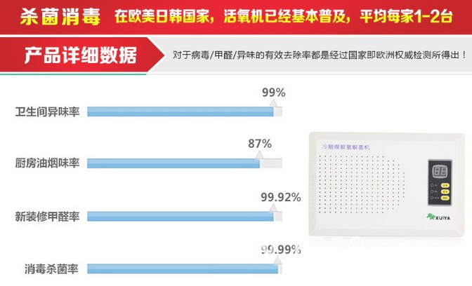 此款家用鮮氧解毒機的獨特設計,負離子與臭氧、冷觸媒風暴更顯人性化科技,幫您解決生活遇到的的健康安 全問題,家有小電器不用怕灰塵 、二手煙、異味、甲 醛 、甲 苯 、臭味、食物中的農藥、添加劑 、激素 、抗生素 、水中的大腸桿菌、葡萄球菌、金黃色球菌等一些細菌與病菌侵擾我們身體健康。
