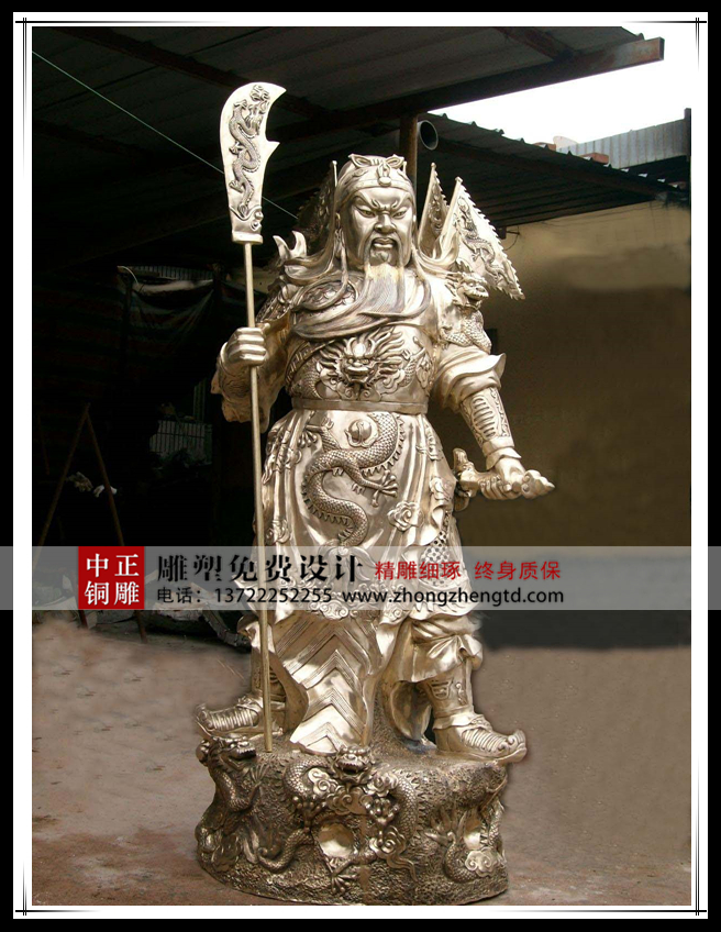 武圣銅關公,銅關公價格,承接銅關公, 關羽是三國著名將領,位列蜀漢五虎上將之首。關羽死后頭葬在河南洛陽,身子葬在湖北當陽。民間盛傳,關羽頭枕洛陽,身臥當陽,魂歸山西。關羽的忠義和勇武的形象,備受人們愛戴,被民眾尊稱為關公、關老爺,后代帝王為了宣傳關羽的現象,多次褒封,最高的尊稱就是武帝。關羽與劉備、張飛是結義兄弟,關羽排行第二,故在在民間又俗稱為關二爺、關二哥,直至現當代的某些社會群體與場合中,擺放上一尊銅關公像也是一件非常普遍的事情。