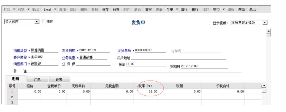 3、此時,再去做銷售單據的錄入,表頭、表體的稅率會自動帶出修改后的稅率。