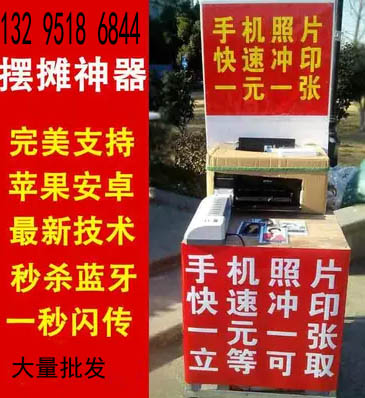 用藍(lán)牙打印機(jī)洗手機(jī)照片,藍(lán)牙打印機(jī)體積小攜帶方便,可用電動(dòng)車普通電瓶提供電力供給,具有流動(dòng)性強(qiáng),成本低廉的特性,通過(guò)手機(jī)藍(lán)牙或wifi無(wú)線傳輸,無(wú)需手機(jī)數(shù)據(jù)線,藍(lán)牙打印機(jī)將智能自動(dòng)接收,每張只用一元錢6寸照只需20秒, 20秒留住你的青春,整套設(shè)備配套齊全