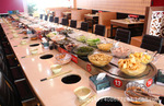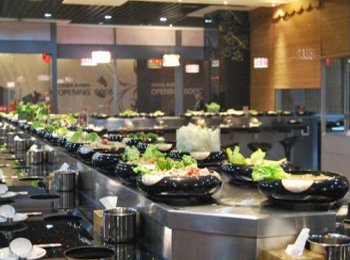 回轉火鍋設備運轉原理:當回轉火鍋設備啟動之后,其輸送帶就會自動不;剞D,工作人員可以用盤子裝好食材然后放置在輸送帶上,然后輸送帶就會帶著食材圍繞店鋪的座位循環回轉。工作人員站在原地就可以隨時補充新鮮的食材,而不用到處跑動,最大限度的減縮了人力資源成本的損耗。而消費者也不用再看哪些枯燥無味的菜單,就坐在舒適的椅子上看著眼前的食材,喜歡就拿,不喜歡就讓其繼續輸送過去即可。既節約人力資源投入,也方便消費者,更具有安 全、快捷、衛生、舒適、美觀、時尚等特點。