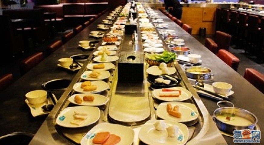 火鍋輸送帶 旋轉火鍋輸送帶,模式新穎:采用回轉機械輸送菜品,品種多樣,顧客不必東奔西跑,僅次一項足以引吸顧客眼球。