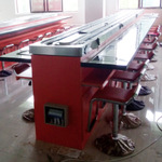 旋轉火鍋傳送設備 回轉火鍋設備用途廣泛,已經成為當今一種流行的元素 ,適用于壽司、火鍋、自助餐店及其他的商品展示。單人單爐符合人們的衛生習慣,且該火鍋輸送設備具有兩用的優點,冬天用在火鍋,夏天用在壽司,只要用特制的不銹鋼蓋板封住餐桌上的爐孔即可成為壽司輸送設備,既實惠又方便,讓您體現經營壽司和火鍋的樂趣,又便于客人在各自的座位上可隨意選擇擺放在輸送帶上的食品,無需服務員送上。