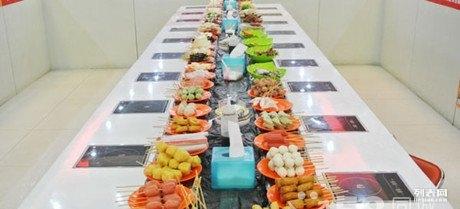 回轉火鍋輸送設備 回轉火鍋輸送帶 回轉火鍋設備的輸送帶的速度都是自己固定的,是根據日式的回轉壽司模式,現已廣泛應用在了回轉火鍋輸送設備上,回轉火鍋實現了傳統火鍋店的人力服務到科技自動服務的跨越。在前期更多的考慮運輸帶的設計和餐座的設計,回轉火鍋店面裝修通常比傳統火鍋店更為時尚,運輸帶上除了火鍋食材之外還有其他小吃、水果、甜點、湯底等,讓顧客還有了更多的選擇性,中間避免了看菜單、傳菜等流程時間也相對較短,保證了食材的新鮮,是目前在火鍋行業中最為時尚方便的一種新吃法。