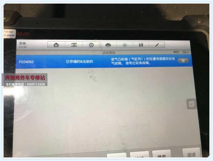 一輛行駛5.5萬公里的奔馳c200出現(xiàn)涼車啟動(dòng)異響、延遲的故障到店維修,接入電腦檢測(cè)故障碼,p034062 進(jìn)氣凸輪軸(氣缸列1)的位置傳感器存在電氣故障,信號(hào)比較有故障。