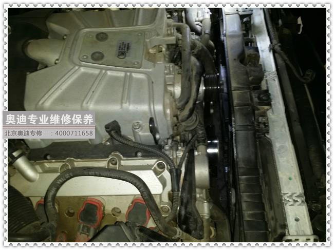我們解決這個問題只需要更換幾套輪即可:其中包括大輪一套,漲緊輪兩只,導(dǎo)向輪一只。奧迪車型的本款車,更換這些組件需要拆卸前杠,水箱冷凝器,拆修比較麻 煩。本次更換作業(yè),使用了原廠的正品組件,整個費用下來也只有4s的一半左右,真是非常的實惠。