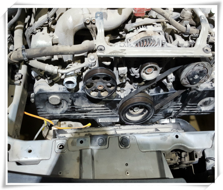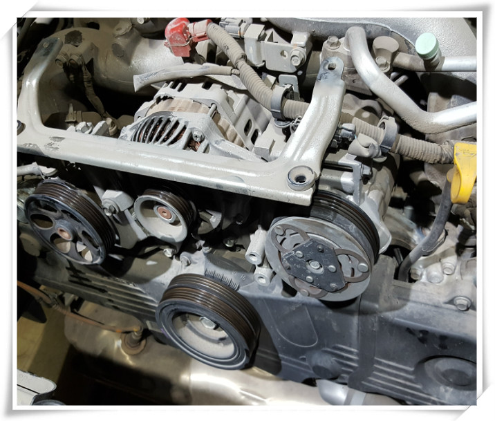 一輛10款的斯巴魯森林人到店換正時,換正時包含皮帶,惰輪,漲緊輪,水泵。