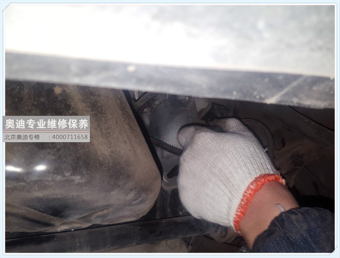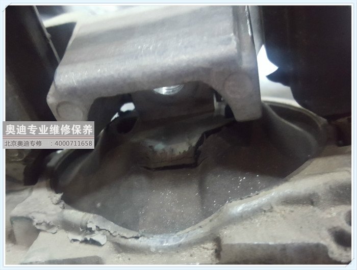 奧迪行駛中底盤出現咔咔咔的異響到店檢修,發現為發動機膠墩老化開裂導致的異響。