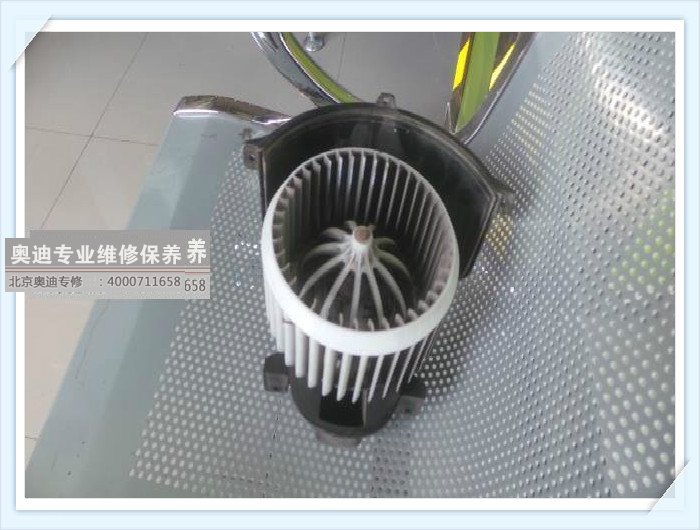 到店一臺奧迪q7車輛,車主反映啟動空調不制冷,具體表現為出風口無風送出,根據車主的反映我們第一時間判斷為空調鼓風機不工作造成。車輛進入工位,我廠技術人員進行故障排查,確定空調管路及空調泵均正常,唯一的毛病就出在空調風機身上。